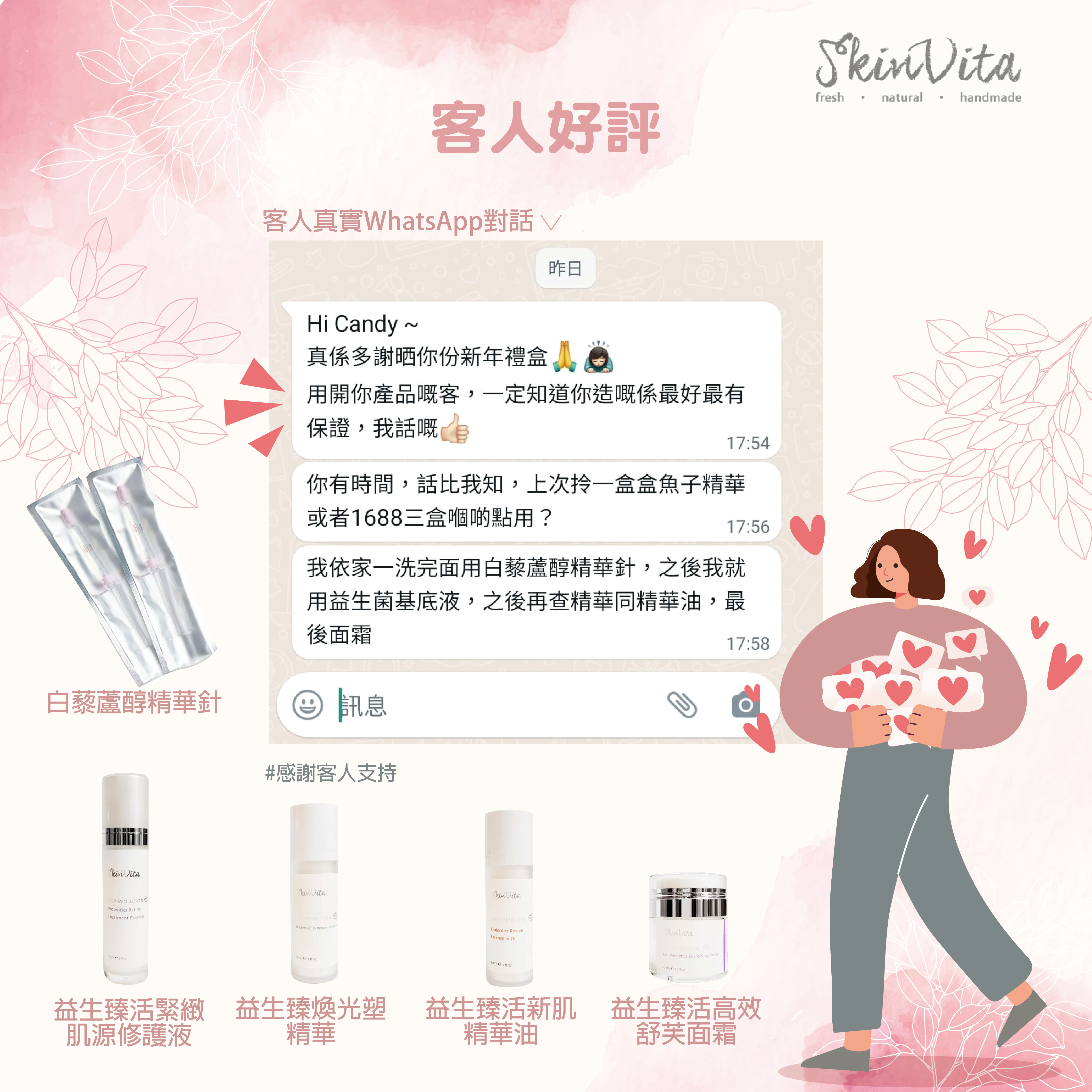 益生菌是模仿皮膚天然防護盾及強效保濕因子,能促進膠原蛋白增生和皮膚自癒能力,令肌膚達到理想的微生物平衡狀態,加強自身天然屏障,抵禦環境中有害物質如自由基、污染物等~重拾健康彈潤肌膚!